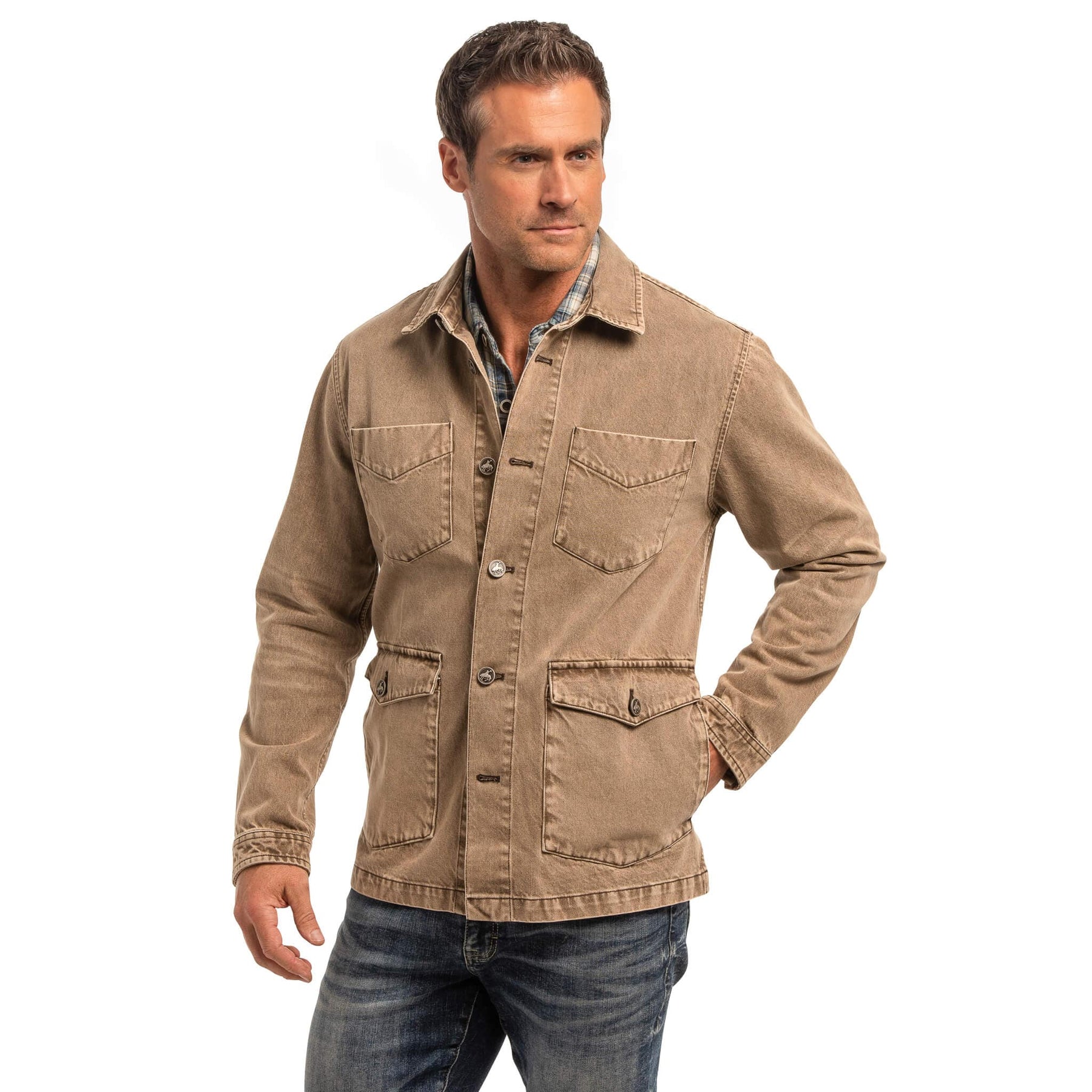 The Cole Barn Jacket reimagines workwear heritage with a contemporary silhouette that doesn't compromise on durability. This shorter, refined take on the classic barn coat starts with rugged cotton denim treated with an enzyme wash for an authentically broken-in aesthetic. Four exterior patch pockets—including two chest and two lower flap styles with hidden side entry—plus two interior zippered pockets deliver practical storage for everyday essentials. Double-needle stitching and reinforced seams guarantee lasting quality through seasons of wear, while adjustable cuffs adapt to your needs. Custom pewter buttons stamped with a bronc rider emblem add distinctive character. Whether you're reaching for weekend adventures or daily errands, the Cole Barn Jacket combines timeless utility with modern style.