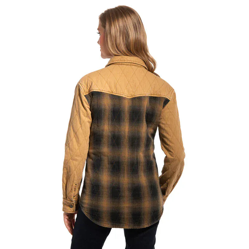 Meet the Kalispell Shacket—where Western heritage meets modern versatility. Crafted from 100% cotton, this khaki plaid beauty features a vintage-washed finish that looks like you've treasured it for years. Diamond quilting across the shoulders, sleeves, and back yoke delivers lightweight warmth without bulk, while the button-front closure, dual chest pockets, and curved hem keep you practical and stylish. Layer it over your favorite tee or wear it solo as a light jacket. The Kalispell effortlessly bridges the gap between casual comfort and timeless Western charm, making it the one piece your wardrobe has been waiting for.